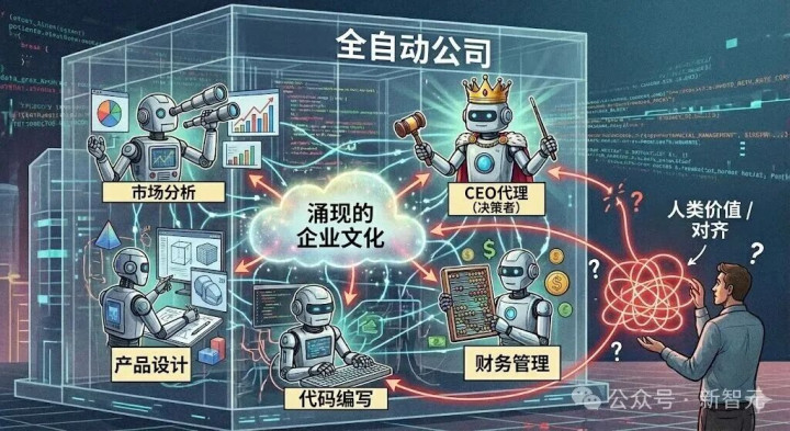 举例,一个「全自动公司」可能由重视市集分析的智能体、重视居品设计的智能体、重视代码编写的智能体和重视财务管理的智能体构成。
