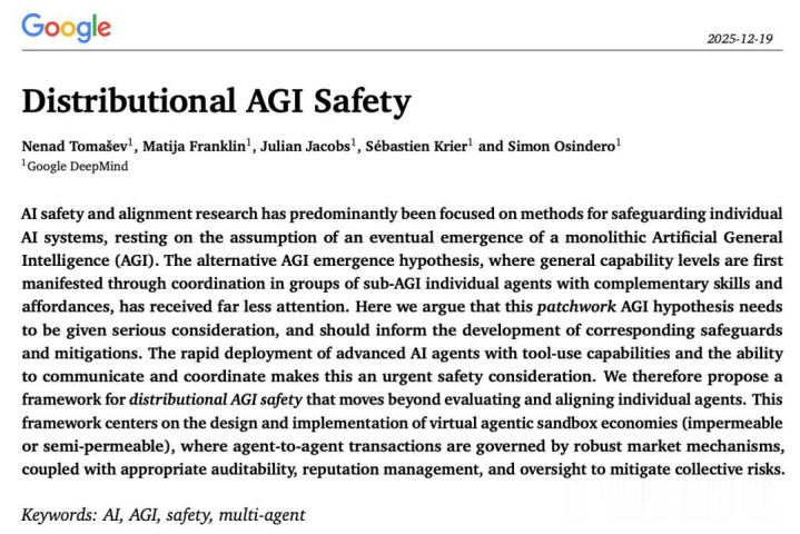 关联词,DeepMind这篇在2025年末发布的重磅论文《分辩式AGI安全》犹如一齐惊雷,澈底颠覆了这一树大根深的假定。